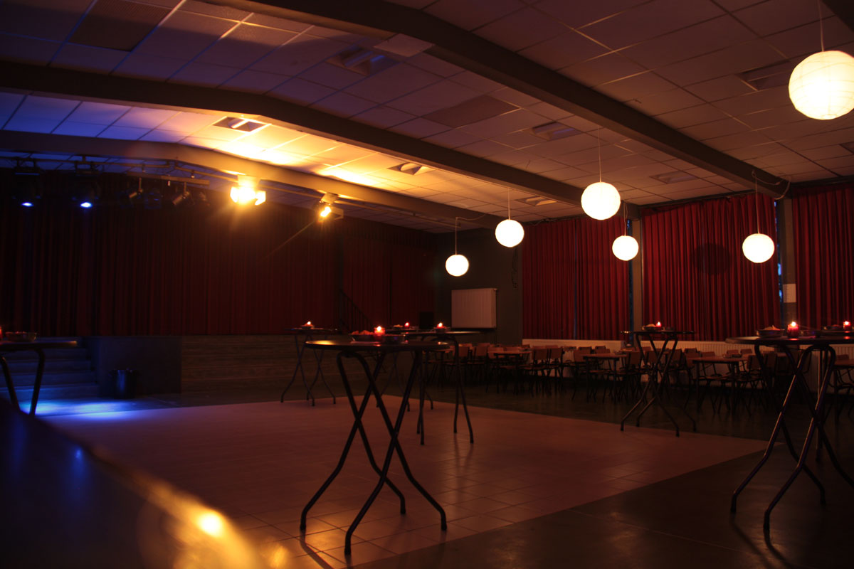 Onze feestzaal is perfect geschikt voor allerhande feesten zoals eetfestijnen, babyborrels, huwelijken. Eveneens kan deze zaal dienst doen voor toneelvoorstellingen, optredens... Er zijn stoelen en tafels aanwezig voor 190 personen. Bij de feestzaal is ook een volledig uitgeruste keuken (oven, friteuse, koelcel) beschikbaar met een uitgebreide service voor 250 personen.